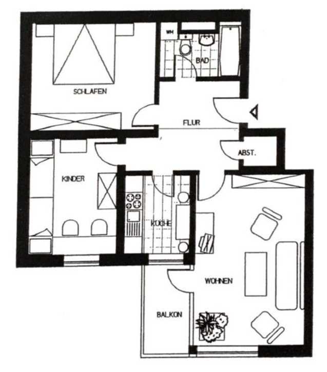 Insgesamt befindet sich die Wohnung in einem ordentlichen, aber älteren Zustand. Aus heutiger Sicht sind optische Auffrischungen, wie neue Bodenbeläge in Schlaf- und Kinderzimmer sowie frische Wand- und Deckenanstriche, sinnvoll, um das volle Potenzial der Wohnung auszuschöpfen.